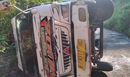 Empat Lawang -aph88.com,||Mobil perusahaan milik pak Maikel terguling di wilayah Desa Martapura Kecamatan Sikap Dalam,pengankutan alat…