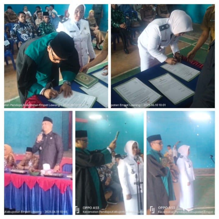 Empat Lawang | Sumsel, aph88.com – camat pendopo Sepza Doris ,S,kom,M.M membuka dan resmi melantik PJ kepala desa Tanjung Raman Kecamatan Pendopo YULIATIN,SE.