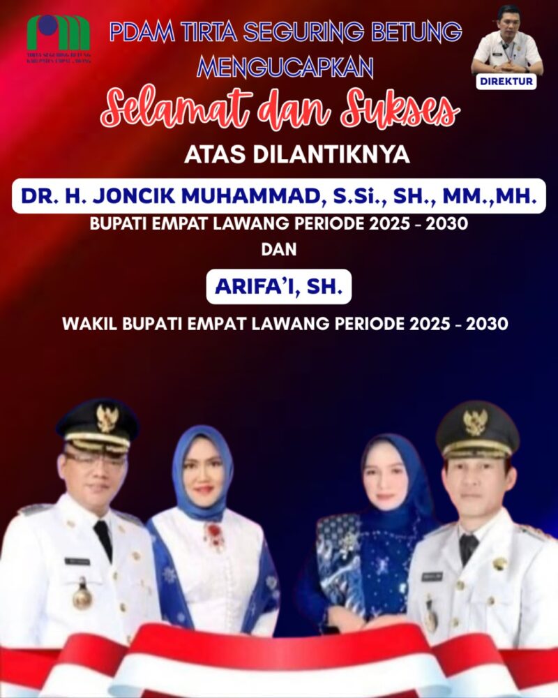 Direktur PDAM Tirta Seguring Betung Mengucapkan Atas Dilantiknya Bupati & Wakil Bupati Empat Lawang