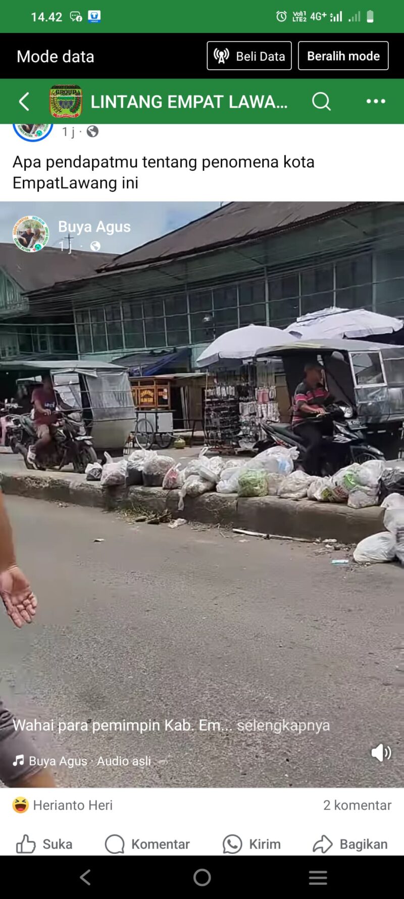 EMPAT LAWANG | SUMSEL, aph88.com – Sejumlah akun Facebook anonim dan akun pendukung salah satu pasangan calon (paslon) Bupati Empat Lawang, HBA-HENY, kembali membuat gaduh di media sosial. Mereka memposting foto puluhan kantong sampah yang berjejer di trotoar Pasar Tebing Tinggi, diduga untuk menjatuhkan citra daerah.